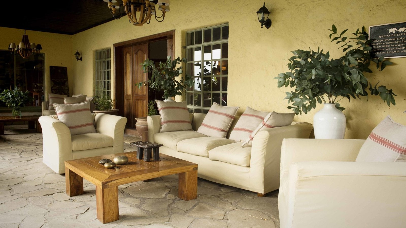 Check in to Sabyinyo Silverback Lodge, nestled in the foothills of the Virunga Mountains. Each stone cottage features a spacious sitting area, fireplace, elegant en-suite bathroom, and private veranda. The main lodge offers a cozy lounge, dining room, library, and patios with sweeping views of the volcanic peaks, creating a luxurious base for your gorilla trekking experience.